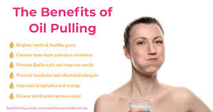 - Purpose: Oil pulling includes rinsing oil (generally sesame or coconut oil) in the mouth for 10-20 minutes prior to letting it out. It is accepted to eliminate poisons, microorganisms, and contaminations from the mouth and work on oral wellbeing.